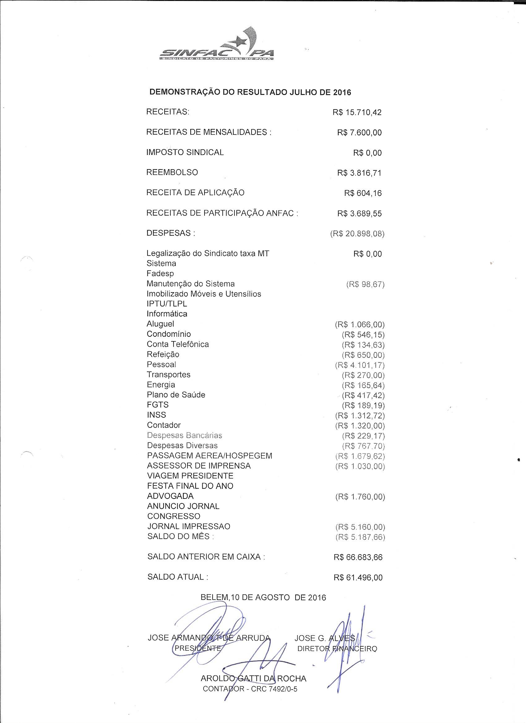 DEMONSTRATIVO JULHO-2016
